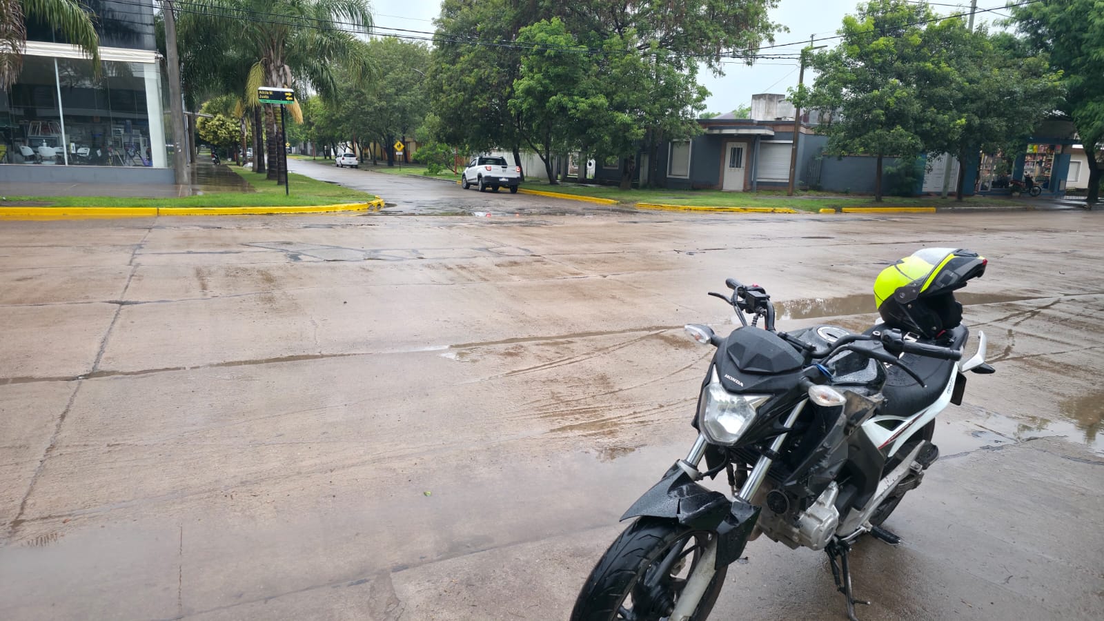 En el lugar se observó una camioneta Fiat Strada, color blanco, conducida por un masculino de 82 años quien circulaba por Alicia M. de Justo de Norte a Sur y al girar hacia el Este por calle Pellegrini, por causas que se tratan de establecer colisiona con una motocicleta Honda Twister, color negra, conducida por un masculino de 42 años quien circulaba también por Alicia M. de Justo en sentido Norte–Sur.