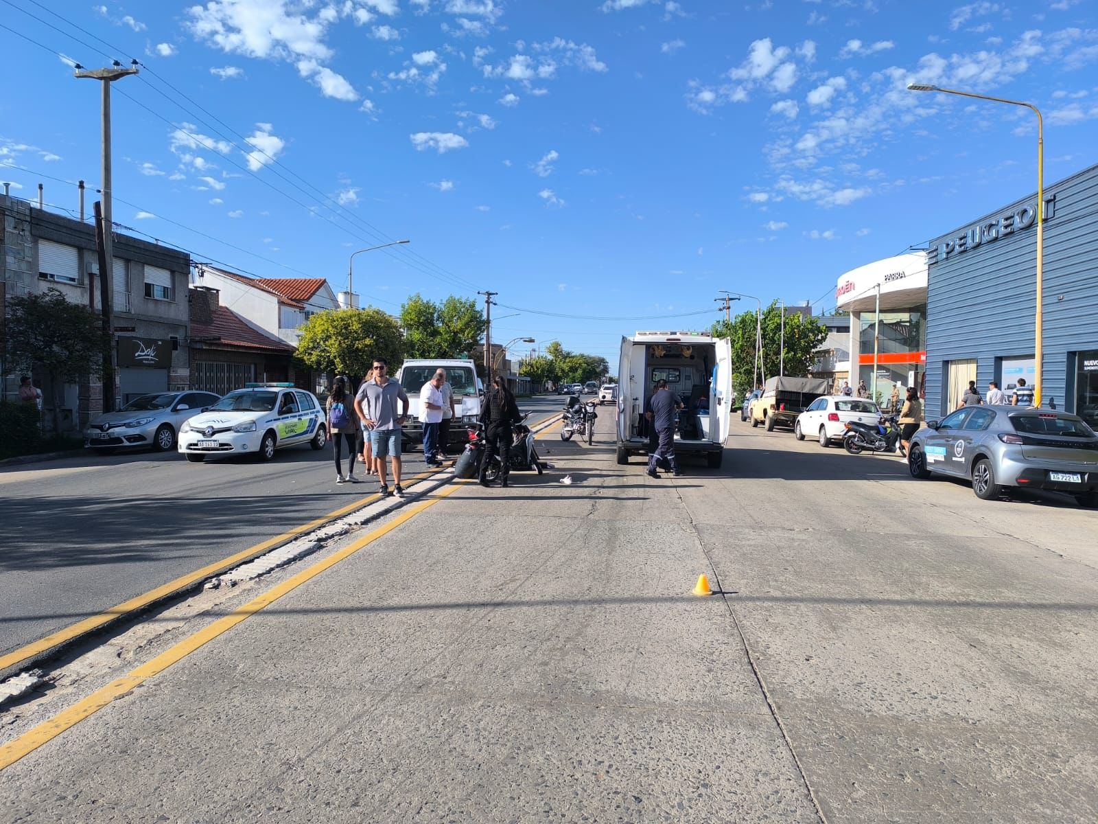 En horas de la mañana, el personal de Patrulla Motorizada se constituyó en Av Urquiza al 300 de la ciudad de San Francisco, entrevistaron a un hombre mayor de edad, quien manifestó que circulaba en su camioneta marca Renault Rodeo, color blanco, y por causas que se tratan de establecer colisionó con una motocicleta marca Honda Wave, color gris, conducida por una mujer mayor de edad .