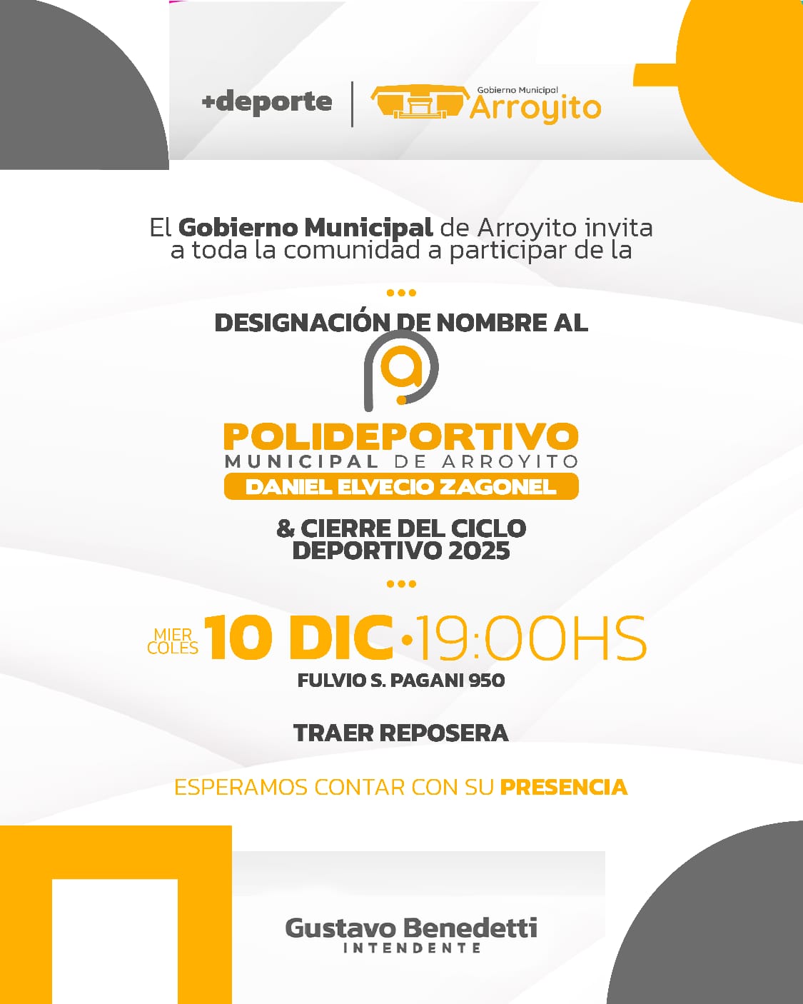 El Gobierno Municipal de la ciudad de Arroyito invitó a toda la comunidad a participar de una jornada especial que combina homenaje, reconocimiento y celebración del deporte.