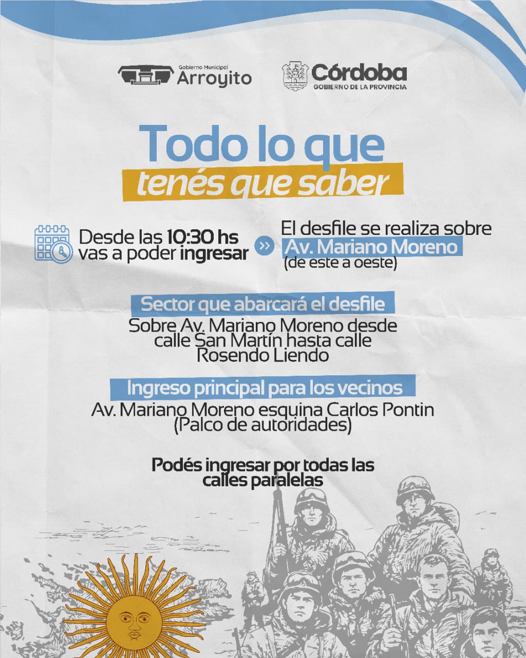 En caso de condiciones climáticas adversas, el acto será trasladado al Salón de Bomberos Voluntarios de Arroyito.