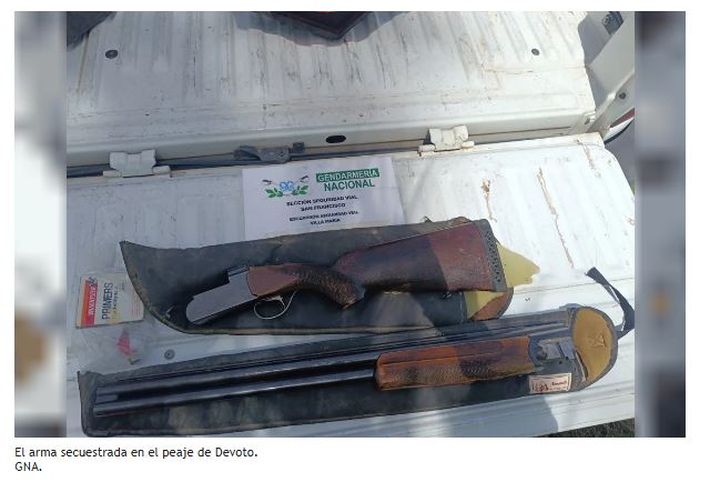 Gendarmería Nacional detuvo a un hombre durante un control en el peaje de Devoto, tras encontrarle un arma de fuego en el vehículo en el que viajaba. El procedimiento fue realizado por efectivos de la Sección Seguridad Vial “San Francisco”, quienes inspeccionaron el automóvil donde se trasladaban tres personas y hallaron una escopeta en el asiento trasero. El arma pertenecía al conductor, que fue aprehendido.